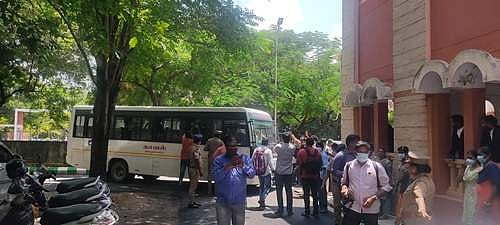 கனியாமூர் பள்ளி மாணவி மர்மமாக உயிரிழந்த வழக்கில் கைது செய்யப்பட்ட பள்ளி தாளாளர் உள்பட 5 பேரை காவலில் எடுத்து விசாரிக்க அனுமதி கோரி சிபிசிஐடி காவல் துறையினர் விழுப்புரம் நீதிமன்றத்தில் செவ்வாய்க்கிழமை மனு தாக்கல் செய்தனர். இந்த மனு புதன்கிழமை விசாரணைக்கு வருவதால் சேலம் சிறையில் இருந்து பள்ளி தாளாளர் உள்பட 5 பேரையும் பலத்த காவல் துறையினர் பாதுகாப்புடன் விழுப்புரம் நீதிமன்றத்துக்கு அழைத்து வரப்பட்டனர்.