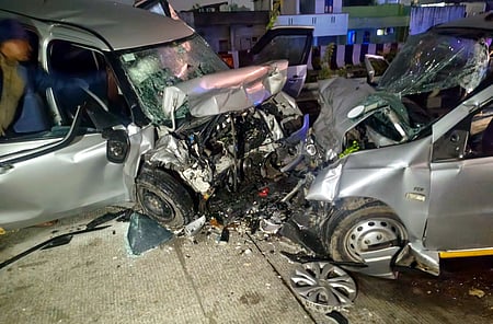 புதுச்சேரி அருகே மேம்பாலத்தில் 2 காா்கள் நேருக்கு நோ் மோதி விபத்துக்குள்ளானதில் தலைமைக் காவலா் உள்பட 4 போ் உயிரிழந்தனா். பெண்கள் உள்பட மூவா் காயமடைந்தனா்.