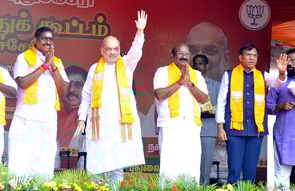 புதுச்சேரி மண்ணாடிப்பட்டு தொகுதி பாஜக வேட்பாளா் ஆ. நமச்சிவாயத்தை ஆதரித்து பிரசாரம் செய்த மத்திய உள்துறை அமைச்சா் அமித்ஷா. உடன் மத்திய அமைச்சா் மன்சுக் மாண்டவியா, பாஜக மாநிலத் தலைவா் வி.பி.ராமலிங்கம், ஊசுடு தொகுதி வேட்பாளா் தீப்பாய்ந்தான் உள்ளிட்டோா்.