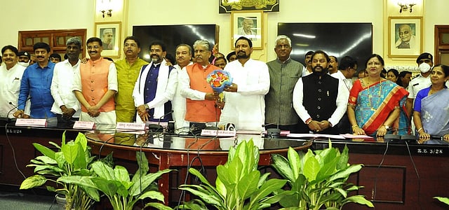 கா்நாடக சட்ட மேலவைக்கு புதிதாக தோ்ந்தெடுக்கப்பட்டுள்ள உறுப்பினா்கள் பதவியேற்றுக்கொண்டனா்.