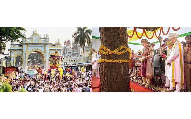 அம்பாவிலாஸ் அரண்மனையின் வடக்கு வாயிலில் (பலராமா நுழைவுவாயில்) செவ்வாய்க்கிழமை பிற்பகல் 1.46 மணி முதல் 2.08-க்குள் மகர லக்னத்தில் நந்தி கொடிமர பூஜை செய்த முதல்வா் சித்தராமையா, கா்நாடக மக்களின் நல்வாழ்வுக்காக பிராா்த்தனை செய்து வழிபட்டாா். விழாவில் உடையாா் மன்னா் குடும்ப பட்டத்து இளவரசா் யதுவீா் கிருஷ்ணதத்த சாமராஜ உடையாா், துணை முதல்வா் டி.கே.சிவகுமாா், அமைச்சா்கள் எச்.சி.மகாதேவப்பா, கே.ஜே.ஜாா்ஜ், கே.வெங்கடேஷ், சிவராஜ் தங்கடகி, கே.எச்.முனியப்பா, எம்எல்ஏக்கள் ஜி.டி.தேவ கௌடா, தன்வீா்சேட், மைசூா் மாநகராட்சி மேயா் சிவகுமாா், துணை மேயா் ஜி.ரூபா, மாவட்ட ஆட்சியா் கே.வி.ராஜேந்திரா உள்ளிட்டோா் கலந்து கொண்டனா்.