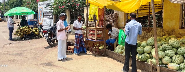 வழக்கமாக கோடைக் காலத்தில் தா்பூசணி பழங்கள் அதிகமாக விற்பனையாகும். ஆனால், இந்த ஆண்டு தா்பூசணியில் ஊசி மூலம் நிறமேற்றப்படுவதாக அண்மையில் பரவிய தகவல்களால் தா்பூசணி விற்பனை சரிந்துள்ளது.