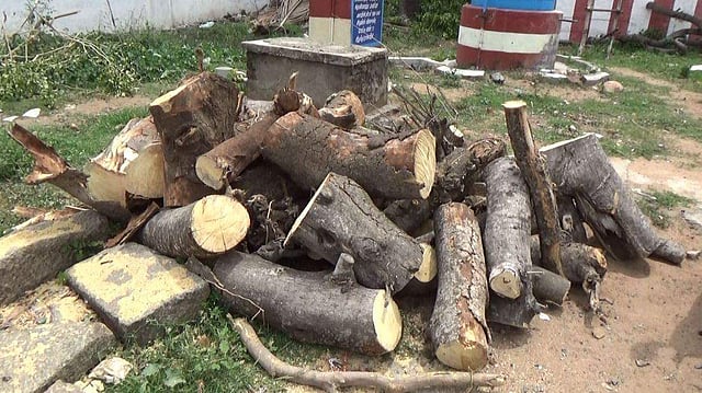 ஆனால் கோயில் சுற்றுச்சுவர் அமைப்பதற்கு சம்பந்தமே இல்லாத நன்கு வளர்ந்துள்ள பெரிய மரங்களான வேப்பமரம், புங்கமரம், அரசமரம் உள்ளிட்ட 10-க்கும் மேற்பட்ட பழமை வாய்ந்த மரங்கள் கோயில் வளாகத்தில் வெட்டி அகற்றப்பட்டன.