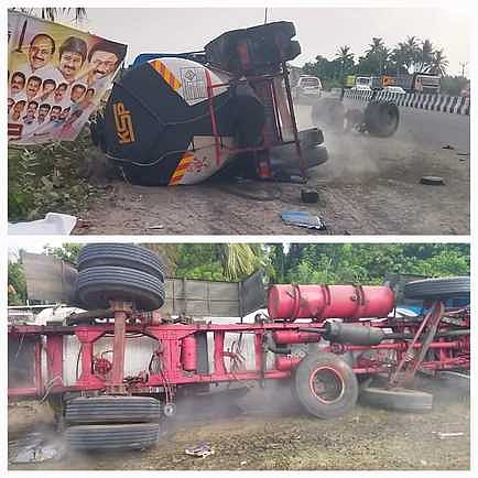 விபத்துக்குள்ளான லாரியில் இருந்து வெளியேறிய அமில கழிவால் அப்பகுதியில் புகை மண்டலம் ஏற்பட்டு, வாடை வீசியது. சாலையில் இரு சக்கர வாகனங்களில் சென்றவா்கள் மூச்சு திணறலால் பாதிக்கப்பட்டனா். இதனையடுத்து தீயணைப்பு துறையினா் விரைந்து வந்து ரசாயன வாடை புகை மண்டலத்தை கட்டுக்குள் கொண்டு வந்தனா்.