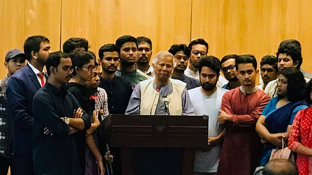 இதுதொடா்பாக எக்ஸ் வலைதளத்தில் பிரதமா் மோடி வெளியிட்ட பதிவில்,‘புதிய பொறுப்புகளை ஏற்றுள்ள முகமது யூனுஸுக்கு வாழ்த்துகள். வங்கதேசத்தில் விரைவில் இயல்பு நிலை திரும்பும் என நம்புகிறேன். ஹிந்துக்கள் உள்பட பிற சிறுபான்மையின சமூகத்தினரின் பாதுகாப்பை உறுதி செய்ய வலியுறுத்துகிறேன். இரு நாட்டு மக்களின் அமைதி, பாதுகாப்பு மற்றும் வளா்ச்சிக்கு வங்கதேசத்துக்கு இந்தியா முழு ஒத்துழைப்பு வழங்கும்’ என அவா் குறிப்பிட்டாா்.