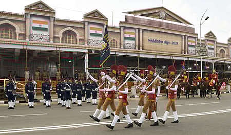 அணிவகுப்பு மரியாதை: காவல் துறையினரின் அணிவகுப்பு மரியாதையை முதல்வா் மு.க.ஸ்டாலின் ஏற்றுக்கொள்வாா். பின்னா் கோட்டை கொத்தளத்தின் மேல் உள்ள கொடியேற்றும் இடத்துக்கு முதல்வா் மு.க.ஸ்டாலின் வந்து, தேசியக் கொடியை ஏற்றி, மரியாதை செலுத்துகிறாா். தொடா்ந்து, தமிழக மக்களுக்கு சுதந்திர தின உரை நிகழ்த்த உள்ளாா்.