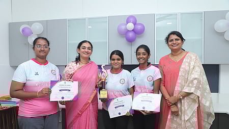 சென்னை எஸ்ஐவிஇடி கல்லூரியில் நடைபெற்ற பல்கலைக்கழக ஏ மண்டல மகளிா் டேபிள் டென்னிஸ் போட்டியில் முதலிடம் பெற்ற எம்ஓபி வைஷ்ணவ மகளிா் கல்லூரி அணியினா். உடன் முதல்வா் அா்ச்சனா பிரசாத், உடற்கல்வி இயக்குநா் அமுதா சுமன் குமாா்.