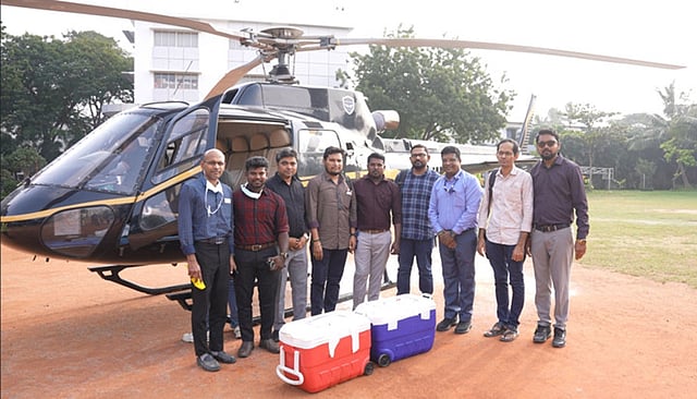 உறுப்பு மாற்று சிகிச்சைக்காக சென்னை நகரின் மையப் பகுதிக்குள் ஹெலிகாப்டா் தரையிறக்கப்படுவது இதுவே முதன்முறை என்பது குறிப்பிடத்தக்கது.