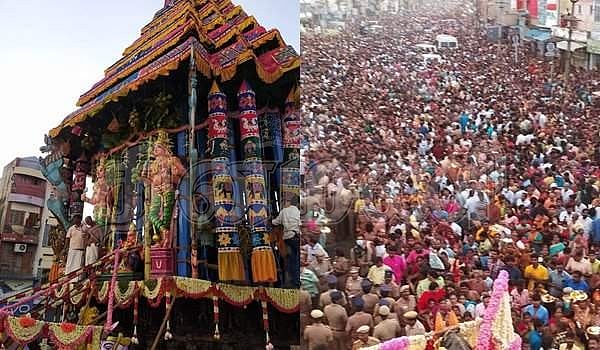 தேரோட்டத்தை முன்னிட்டு ஸ்ரீதேவி, பூதேவியருடன் உற்சவர் தேவராஜசுவாமி ஆலயத்திலிருந்து அதிகாலையில் புறப்பாடாகி காந்தி சாலையில் உள்ள தேரடிக்கு எழுந்தருளினார். தேரில் இருக்கும் பெருமாளை தரிசிக்க பக்தர்கள் வரிசையாக அனுமதிக்கப்பட்டனர்.அப்போது கூட்டம் அதிகமானாதால் கூட்ட நெரிசலை சமாளிக்க முடியாமல் காவல்துறையினர் மிகுந்த அவதிக்குள்ளாகினர்.