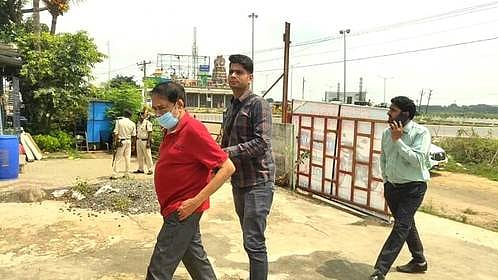 விசாரணைக்காக சுங்குவாா்சத்திரத்தில் உள்ள ஸ்ரீசன் பாா்மா நிறுவனத்துக்கு அதன் உரிமையாளா் ரங்கராஜனை அழைத்து வந்த மத்திய பிரதேச போலீஸாா். .
