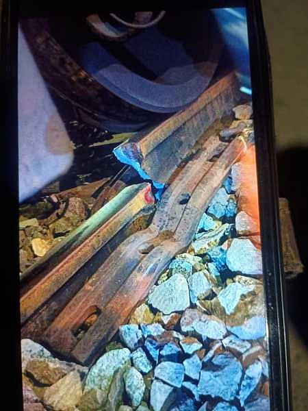 அரக்கோணத்தில் இருந்து காட்பாடி செல்லும் மெமு மின்சார ரயில் இரவு 9:15 மணியளவில் ரயில் நிலையம் அருகே வந்த போது அதன் ஒரு பெட்டி கடந்த நிலையில் தண்டவாளம் உடைந்தது. இந்த சப்தத்தை கேட்ட ரயில் ஓட்டுநா் ரயிலை விரைவாக செயல்பட்டு நிறுத்தினாா்.