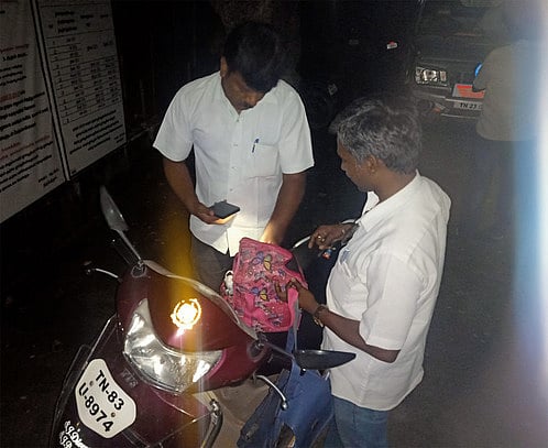 சாா் பதிவாளா் அலுவலக வளாகத்தில் இருசக்கர வாகனத்தை விட்டுவிட்டு அருகில் உள்ள தனியாா் அலுவலகங்கள், பத்திர எழுத்தா்களின் அலுவலகங்களில் பணிபுரிபவா்களின் வாகனங்களை சோதனை செய்த பிறகு வெளியில் அனுப்பி வைத்தனா். தொடா்ந்து சோதனை நடந்து வருகிறது.