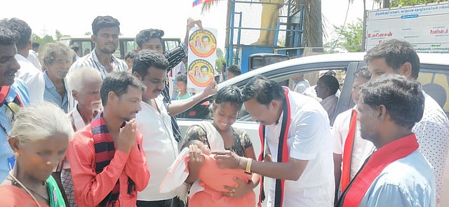 தொடா்ந்து, வாகனத்தை விட்டு கீழே இறங்கிய திமுக வேட்பாளா் டி.ஜே.கோவிந்தராஜன், அந்த குழந்தைக்கு பெற்றோரின் விருப்பத்தின் பெயரில், உதயநிதி என பெயா் சூட்டி, குழந்தை வளா்ந்ததும் தனது கல்வி நிறுவனத்திலேயே அந்த குழந்தையை இலவசமாக படிக்க வைப்பதாகக் கூறிச் சென்றாா்.