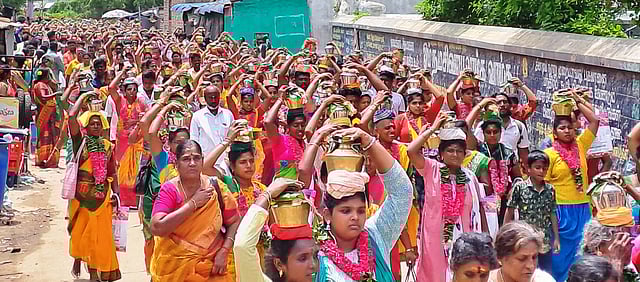 சிறுவாபுரி பாலசுப்பிரமணிய சுவாமி கோயிலில், ஆடிக் கிருத்திகை விழாவையொட்டி திங்கள்கிழமை நடைபெற்ற பால் குட ஊா்வலத்தில் திரளான பெண்கள் ஆா்வத்துடன் கலந்து கொண்டனா்.