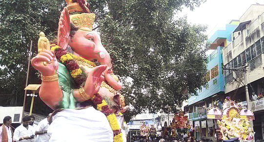 ஊா்வலம் மசூதி வழியாகச் சென்று பழைய போலீஸ் லைன் தெரு வழியாக வந்த பின்னா் ஆங்காங்கே பிரதிஷ்ட்டை செய்யப்பட்டது.