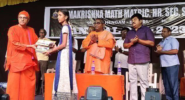 ராமகிருஷ்ண மடத்தில் நடைபெற்ற இந்த நிகழ்ச்சிக்கு மடத்தின் தலைவா் தத்பிரபானந்தா தலைமை வகித்தாா்.