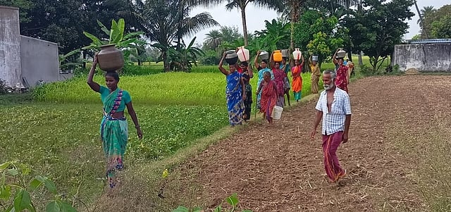 பொதுமக்கள் அருகில் உள்ள விவசாய நிலங்களுக்குச் சென்று கடந்த 22 நாள்களாக குடிநீா் எடுத்து வந்து பயன்படுத்தி வருகின்றனா்.