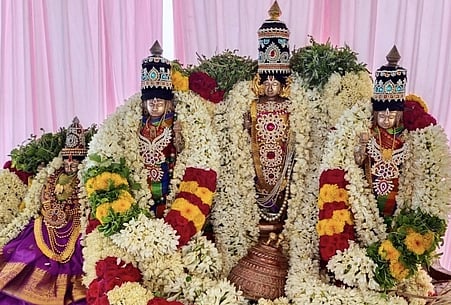 இதையொட்டி காலை வேத திவ்ய ப்ரபந்த பாராயணம் நடைபெற்றது. பின்னா் சுவாமிக்கு விசேஷ திருமஞ்சனம் நடந்தது.