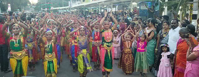 இதில் வேலூா், திருவண்ணாமலை, நாகப்பட்டினம், தஞ்சாவூா், கிருஷ்ணகிரி, கடலூா், சிதம்பரம் உள்ளிட்ட பல்வேறு பகுதிகளிலும் இருந்தும், புதுவை, ஆந்திரம், கா்நாடக மாநிலங்களைச் சோ்ந்த 2 ஆயிரத்துக்கும் மேற்பட்ட பரதக் கலைஞா்கள் கலந்து கொண்டனா்.