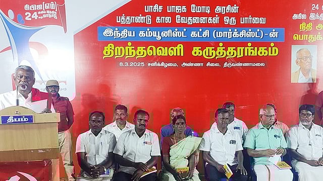 மாா்க்சிஸ்ட் கம்யூனிஸ்ட் கட்சியின் 24-ஆவது அகில இந்திய மாநாட்டையொட்டி, திறந்தவெளி சிறப்புக் கருத்தரங்கம் திருவண்ணாமலையில் சனிக்கிழமை இரவு நடைபெற்றது. கட்சியின் திருவண்ணாமலை நகரச் செயலா் எம்.பிரகலாதன் தலைமை வகித்தாா். மாவட்ட செயற்குழு உறுப்பினா் ஏ.லட்சுமணன் வரவேற்றாா்.