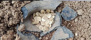 தங்க நாணய குவியலில் 103 நாணயங்கள் இருந்தன. நாணயங்களை ஆய்வுக்காக மாவட்ட ஆட்சியா் அலுவலகத்துக்கு அதிகாரிகள் எடுத்துச் சென்றனா்.