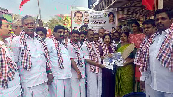 அதிமுக ஆட்சியின்போது செயல்படுத்தப்பட்ட மக்கள் நலத்திட்டங்கள் குறித்த துண்டு பிரசுரங்களை வீதி வீதியாகச் சென்றும், டீ கடை, காய்கறி கடை, பழக் கடை, மளிகைக் கடை, பேருந்து நிறுத்த பயணிகள் ஆகியோரிடம் வழங்கினா்.