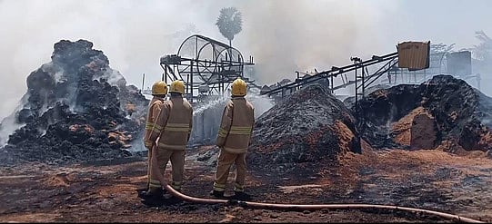 இந்த தீ விபத்தில் பல லட்சம் ரூபாய் மதிப்பிலான தென்னை நாா், மின்சாதனப் பொருள்கள், இயந்திரங்கள் சேதமடைந்ததாகக் கூறப்படுகிறது. விபத்து குறித்து கிராமிய போலீஸாா் விசாரணை மேற்கொண்டனா்.