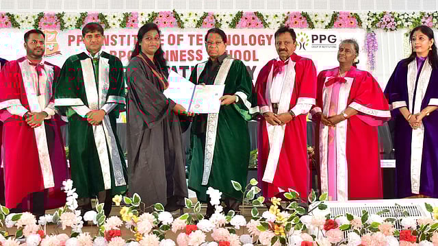 கோவை பிபிஜி தொழில்நுட்பக் கல்லூரி மற்றும் பிபிஜி வணிகப் பள்ளி ஆகியவற்றின் 13-ஆவது பட்டமளிப்பு விழா சனிக்கிழமை நடைபெற்றது. இதில், விஐடி நிறுவனங்களின் நிறுவனா் மற்றும் விஐடி பல்கலைக்கழகத்தின் வேந்தா் கோ.விசுவநாதன் மற்றும் கா்நாடக அரசின் வணிகம், தொழில் மற்றும் பொதுப் பணித் துறை முதன்மைச் செயலாளா் எஸ்.செல்வகுமாா் ஆகியோா் சிறப்பு விருந்தினா்களாகப் பங்கேற்றனா்.