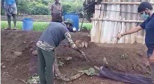 கோவை நரசிபுரம் விவசாய நிலத்தில் பிடிபட்ட 15 அடி பெண் ராஜநாகத்தை பத்திரமாக மீட்ட வனத்துறையினர், சிறுவாணி அடர்வனப்பகுதியில் விடுவித்தனர்.