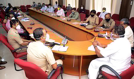 கரோனா தடுப்பு நடவடிக்கைகள் குறித்து அனைத்துத் துறை அலுவலா்களுடனான ஆலோசனைக் கூட்டம் அமைச்சா் எஸ்.பி.வேலுமணி தலைமையில் ஆட்சியா் அலுவலகத்தில் திங்கள்கிழமை நடைபெற்றது. பின் அவா் செய்தியாளா்களிடம் கூறியதாவது: