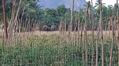 கோவையை அடுத்த பேரூர் தீத்தி பாளையம் கிராமத்தில் குடடைதோட்டம் அருகில் தாமோதரன் என்பவருக்கு சொந்தமான நிலத்தில், நேற்றிரவு சுமார் ஐந்திற்கும் மேற்பட்ட யானைகள் புகுந்து பயிர்களை சேதம் செய்து, அவர் தங்கியிருந்த வீட்டு கதகளை உடைத்து திண்பண்டங்களையும், பாத்திரங்களையும் சேதப்படுத்தி உள்ளது.