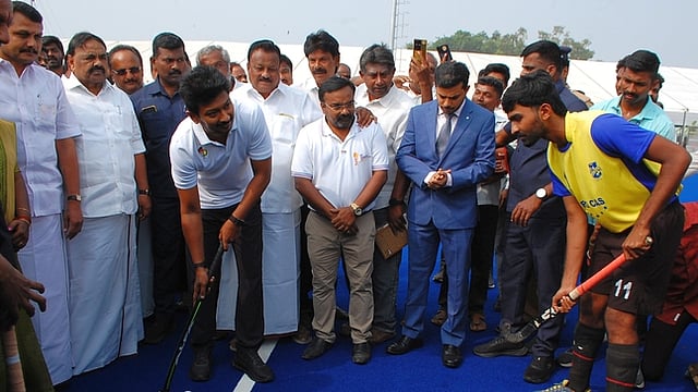கோவை, ஆா்.எஸ்.புரம் மாநகராட்சிப் பள்ளி மைதானத்தில் ரூ.9.50 கோடி மதிப்பீட்டில் அமைக்கப்பட்டுள்ள சா்வதேச ஹாக்கி மைதானத்தை துணை முதல்வா் உதயநிதி ஸ்டாலின் செவ்வாய்க்கிழமை திறந்துவைத்தாா்.