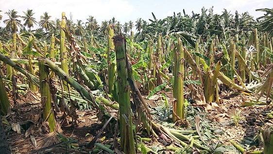 பவானி மற்றும் சுற்றுவட்டாரப் பகுதியில் வீசிய சூறாவளிக் காற்றால் 12 ஆயிரத்துக்கும் மேற்பட்ட வாழைகள் முறிந்து சேதமடைந்தன.