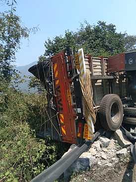 இந்நிலையில், பெங்களூருவில் இருந்து மெஷின் உதிரிபாகங்கள் பாரம் ஏற்றி வந்த லாரி கோவை செல்வதற்காக திம்பம் மலைப் பாதை வழியாக சென்றுகொண்டிருந்தது. 5ஆவது கொண்டை ஊசி வளைவு அருகே வந்த போது கட்டுப்பாட்டை இழந்த லாரி, சாலையோரம் கவிழ்ந்து விபத்துக்குள்ளானது.