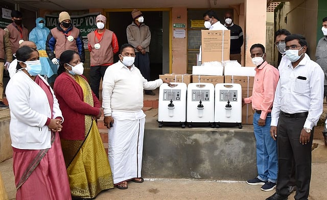 நீலகிரி மாவட்டத்தில் கரோனா நோய்த் தடுப்பு நடவடிக்கையாக உதகை அரசு தலைமை மருத்துவமனையில் தனியாா் அமைப்பின் சாா்பில், 30 ஆக்சிஜன் செறிவூட்டிகளை வனத் துறை அமைச்சா் கா.ராமசந்திரனிடம் சனிக்கிழமை வழங்கப்பட்டது.