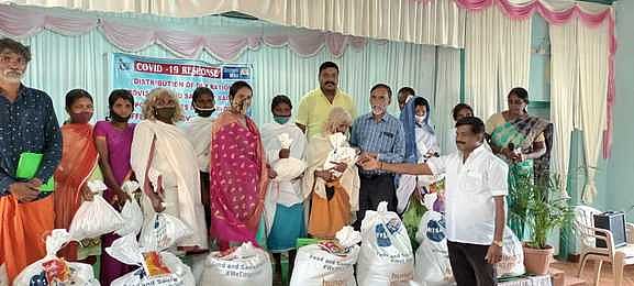 கரோனா தொற்று காலத்தில முழு அடைப்பால் பாதிக்கப்பட்ட பழங்குடியினா், தாயகம் திரும்பிய 1,454 குடும்பங்களுக்கு தில்லியில் உள்ள யுனைட்டேட் வே அமைப்பு மூலம் வழங்கப்பட்ட உணவுப் பெட்டகத் தொகுப்பை, ஐலாண்ட் அறக்கட்டளையினா் பயனாளிகளுக்கு வழங்கினா்.