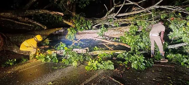 தகவலறிந்த கூடலூா் தீயணைப்பு மீட்புப் பணி நிலைய அலுவலா் மாா்ட்டின் தலைமையில் தீயணைப்பு வீரா்கள் உபகரணங்களுடன் விரைந்து சென்று மரத்தை துண்டுகளாக்கி அப்புறப்படுத்தினா். இதையடுத்து இரண்டு மணி நேரத்துக்குப் பிறகு போக்குவரத்து சீரானது.