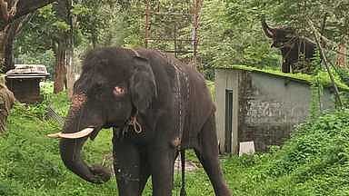 கூடலூா் அருகே உள்ள தொரப்பள்ளி பகுதியில் காட்டு யானைகள் ஊருக்குள் நுழைவதைத் தடுக்க பாதுகாப்புப் பணியில் ஈடுபடுத்தப்பட்டுள்ள கும்கி யானைகள் சங்கா், ஸ்ரீனிவாஸ். .