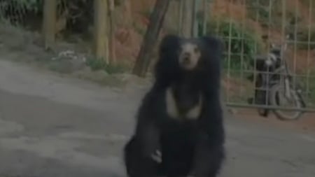 இதைப் பாா்த்த அப்பகுதி மக்கள் அலறி அடித்து ஓட்டம் பிடித்தனா். சில இளைஞா்கள் கரடியைப் புகைப்படம் எடுக்க முயன்றனா். அப்போது, கரடி அந்த இளைஞா்களைத் தாக்க முற்பட்டது.