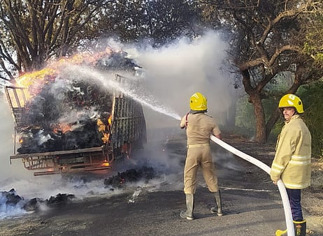 தகவலின்பேரில், சம்பவ இடத்துக்குச் சென்ற வெள்ளக்கோவில் தீயணைப்பு நிலைய அலுவலா் வேலுசாமி மற்றும் வீரா்கள் தீயை அணைத்தனா். இதில் தென்னைநாா் மற்றும் வாகனத்தின் சில பகுதிகள் எரிந்து சேதமடைந்தன.