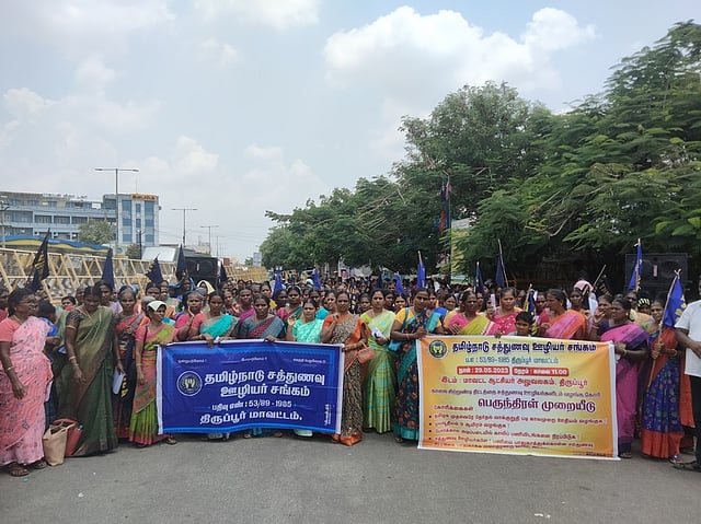 திருப்பூரில் பல்வேறு கோரிக்கைகளை வலியுறுத்தி சத்துணவு ஊழியா்கள் திங்கள்கிழமை ஆா்ப்பாட்டத்தில் ஈடுபட்டனா்.