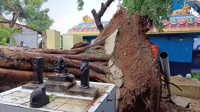 மாசாணியம்மன் கோயிலிலும் மரம் சாய்ந்தது: