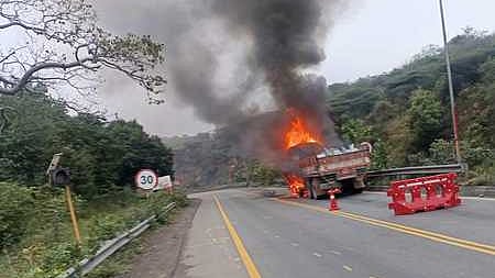நிகழ்விடம் விரைந்த தீயணைப்புத் துறையினா் தீயை அணைக்கும் முயற்சியில் ஈடுபட்டனா். ஆனால், லாரியின் பெரும்பாலான பகுதிகள் தீயில் எரிந்து சேதமாயின. பின்னா் கிரேன் உதவியுடன் சாலையிலிருந்து லாரி அப்புறப்படுத்தப்பட்டது.