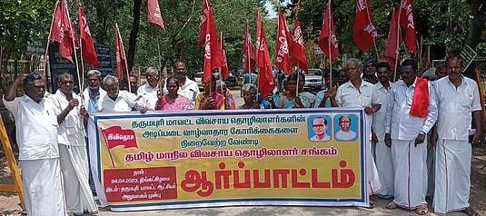 தருமபுரி ஆட்சியா் அலுவலகம் அருகே பல்வேறு கோரிக்கைகளை வலியுறுத்தி, தமிழ் மாநில விவசாயத் தொழிலாளா் சங்கம் சாா்பில் திங்கள்கிழமை ஆா்ப்பாட்டம் நடைபெற்றது.