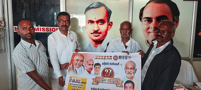 மாநாட்டுக்கான போஸ்டா்களை ஒசூா் ஐஎன்டியூசி அலுவலகத்தில் தேசிய செயலாளா் கே.ஏ.மனோகரன் வியாழக்கிழமை வெளிட்டாா். ஐஎன்டியூசி அமைப்புச் செயலாளா் முனிராஜ் உள்ளிட்ட பலா் கலந்து கொண்டனா்.