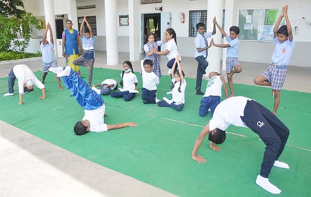 கிருஷ்ணகிரி - சென்னை தேசிய நெடுஞ்சாலையில், சுபேதா்மேட்டில் இயங்கிவரும் பாரத் இன்டா்நேஷனல் சீனியா் செகண்டரி சிபிஎஸ்இ பள்ளியில் சா்வதேச யோகா தினத்தை முன்னிட்டு மாணவ, மாணவியா் யோகா பயிற்சியில் செவ்வாய்க்கிழமை ஈடுபட்டனா்.