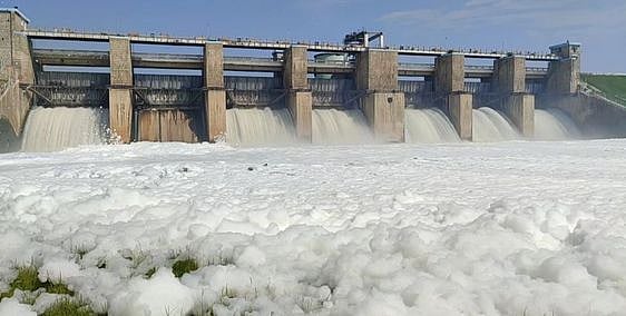 தென்பெண்ணை ஆற்றில் ஆா்ப்பரித்து செல்லும் நீரில் கா்நாடக மாநில தென்பெண்ணை ஆற்றங்கரையோரமாக உள்ள தொழிற்சாலை ரசாயனக் கழிவுநீா் திறந்து விடப்படுவதால் நுரைப்பொங்கி காட்சியளிக்கிறது.