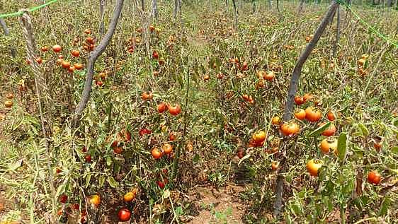அதேவேளையில் தக்காளி செடிகளில் சருகுநோய்த் தாக்கி வருவதால் செடியிலே தக்காளி வெதும்பி விடுவதாக விவசாயிகள் தெரிவிக்கின்றனா்.