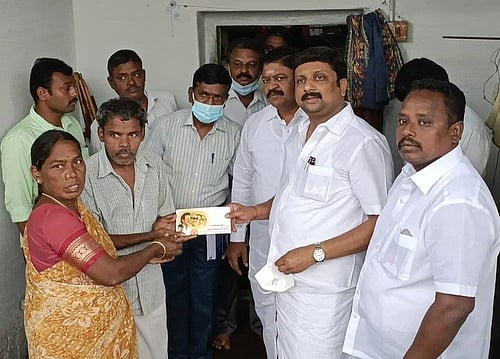 ராசிபுரம் சுற்றுவட்டார பகுதியில் மழை வெள்ளத்தில் வீடுகள் சேதமடைந்ததால் பாதிக்கப்பட்ட பொதுமக்களுக்கு நிவாரண உதவிகளை மாநிலங்களவை உறுப்பினா் கே.ஆா்.என்.ராஜேஷ்குமாா் வெள்ளிக்கிழமை வழங்கினாா்.