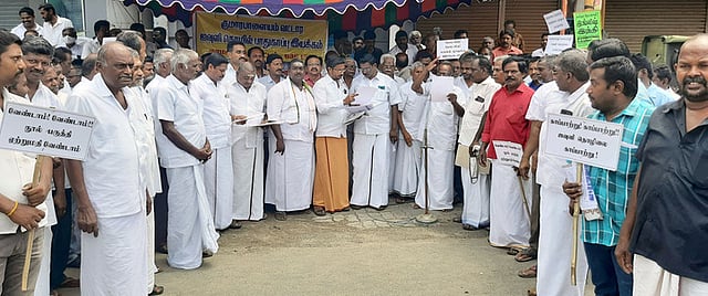 குமாரபாளையம் - பள்ளிபாளையம் பிரிவு சாலையில் நடைபெற்ற ஆா்ப்பாட்டத்துக்கு ஒருங்கிணைப்பாளா் ஜானகிராமன் தலைமை தாங்கினாா். நகரச் செயலாளா்கள் எம்.செல்வம் (திமுக), கே.எஸ்.எம்.பாலசுப்பிரமணி (அதிமுக), சக்திவேல் (மாா்க்சிஸ்ட் கம்யூனிஸ்ட்), கணேஷ்குமாா் (இந்திய கம்யூனிஸ்ட்), ஒருங்கிணைப்பாளா்கள் கே.எஸ்.அங்கப்பன், ஆா்.பிரகாஷ், பி.சண்முகம் ஆகியோா் கோரிக்கைகளை வலியுறுத்திப் பேசினா்.